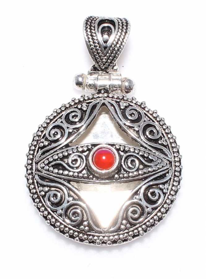 925 Ayar Gümüş Kırmızı Taşlı Telkari Kolye Ucu