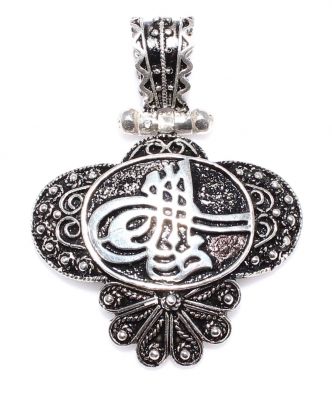 Kolye ucu 925 ayar gümüşten imal edilmiştir. Şekilsiz telkari model kolye ucu 3,1 cm'ye 4,1 cm boyutlarındadır. Zincir dahil değildir. Kolye ucu taşsızdır ve üzerinde Osmanlı Tuğrası deseni vardır. Kolye ucu 7,38 gram ağırlığındadır.