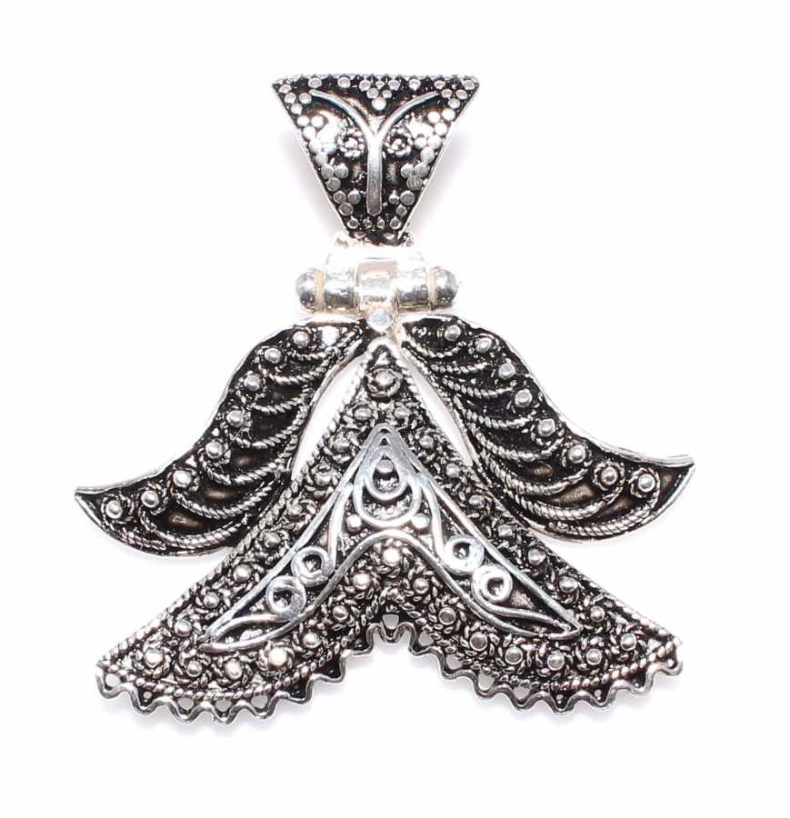 925 Ayar Gümüş V Şeklinde Telkari Kolye Ucu