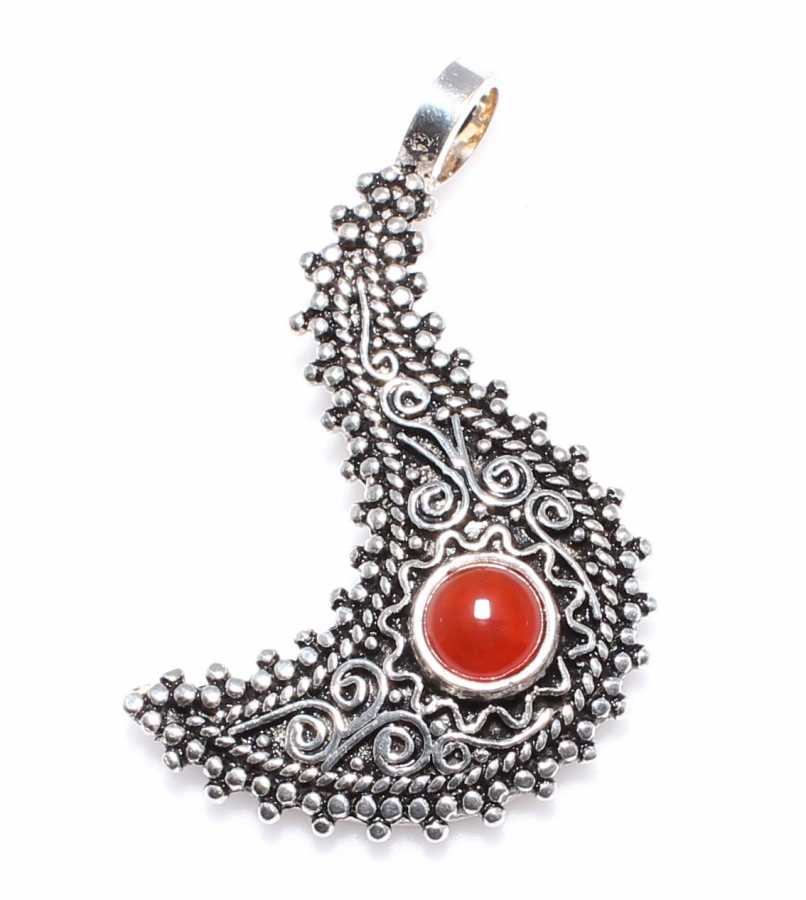 925 Ayar Gümüş Akik Taşlı Yarım Ay Telkari Kolye Ucu