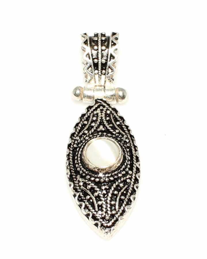 Kolye ucu 925 ayar gümüşten imal edilmiştir. Oval şeklinde telkari model kolye ucu 1,3 cm'ye 4,3 cm boyutlarındadır. Zincir dahil değildir. Kolye ucu kedi gözü taşlıdır. Kolye ucu 6,32 gram ağırlığındadır.