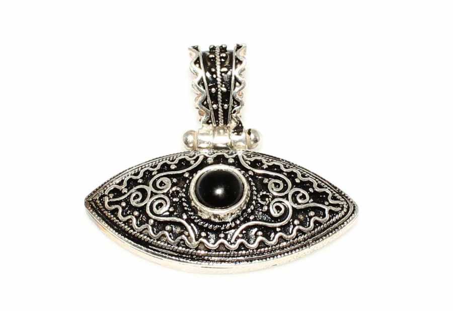 925 Ayar Gümüş Oniks Göz Modeli Telkari Kolye Ucu