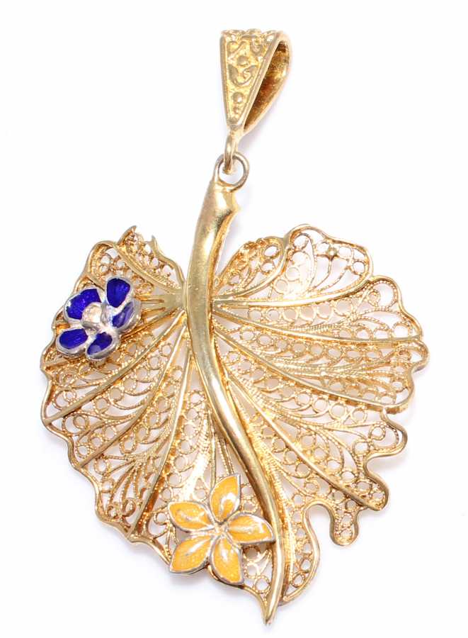 925 Ayar Gümüş Yaprak Şeklinde Telkari Kolye Ucu, Sarı