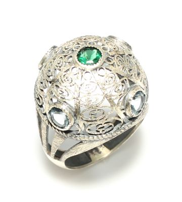 925 Ayar Gümüş Telkari yeşil ve açık mavi zirkon taşlı 14 ölçü yüzük Gramı: 4,53 gr