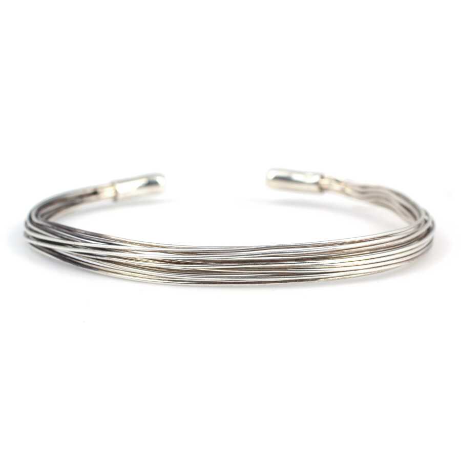 Gümüş bilezik 925 ayar gümüşten imal edilmiştir. Gümüş bileziğin altı açıktır. Telli model bilezik 5,9 cm çapındadır ve 0,7 cm enindedir. Bilezik taşsızdır ve altı açık olduğu için ayarlanabilir. Ağırlığı 12 gramdır.