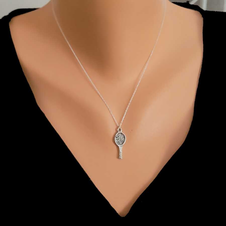 Gümüş kolye 925 ayar gümüşten yapılmıştır. Gümüş kolye 45 cm uzunluğundadır. Tenis raketi şeklinde kolye 2,7 cm'ye 1,0 cm boyutlarındadır. Kolye taşsızdır. Charm Kolye 3,3 gramdır.