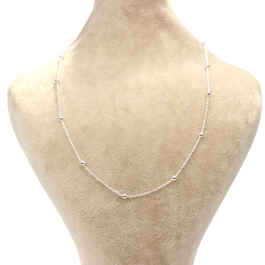 Gümüş kolye 925 ayar gümüşten yapılmıştır. Toplu zincir kolye 45 cm uzunluğundadır. Kolye taşsızdır. Ağırlığı 1,82 gramdır.