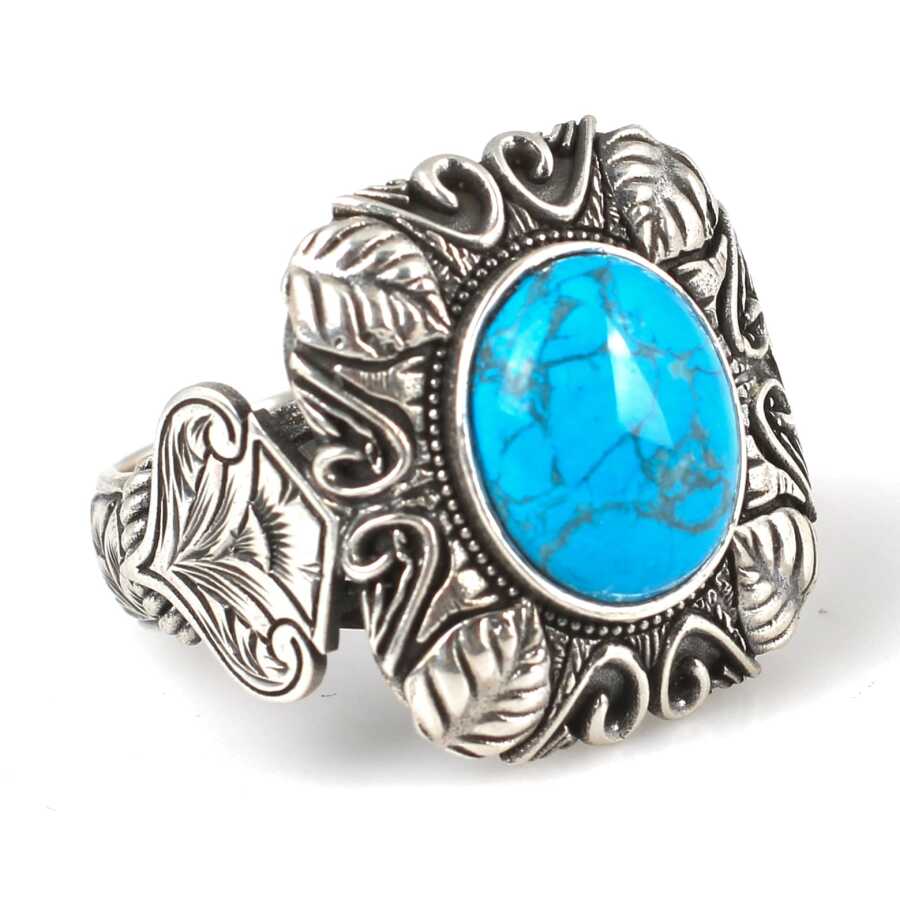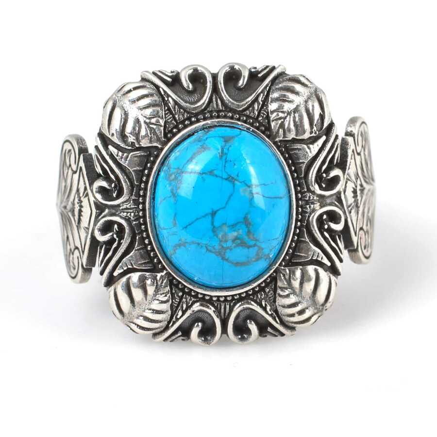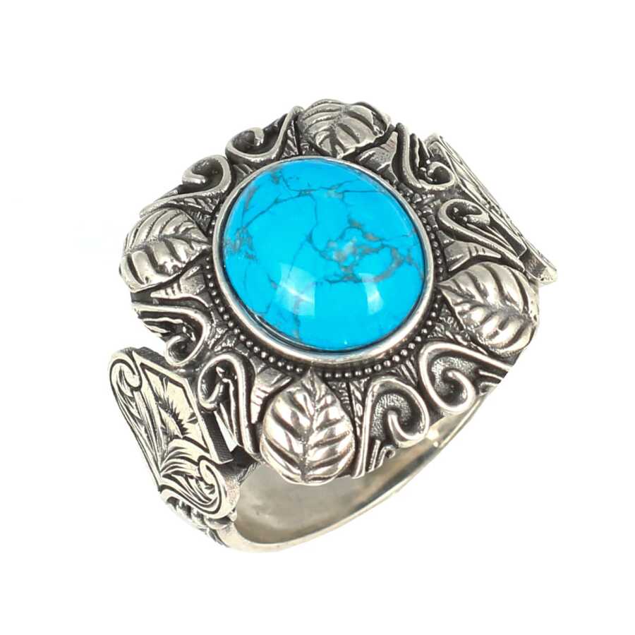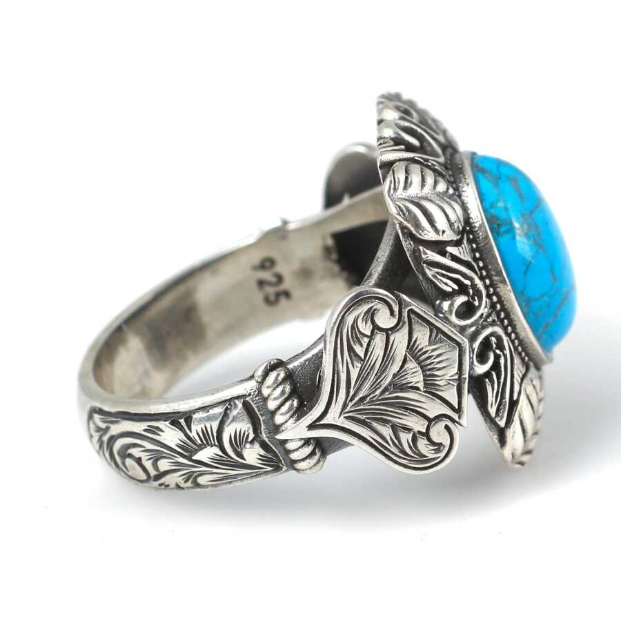 Yüzük 925 ayar gümüşten üretilmiştir. Taşlı yüzüğün üst kısmı 2,1 cm boyutlarındadır. Resimdeki yüzük 21 ölçüdür, ancak tüm ölçüler özel olarak yapılabilmektedir. Yüzük turkuaz taşlıdır. Ağırlığı 12,26 gramdır.