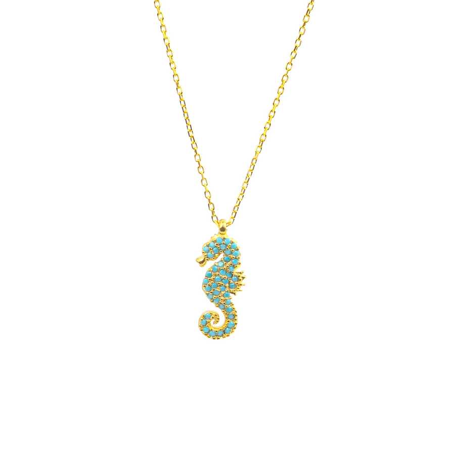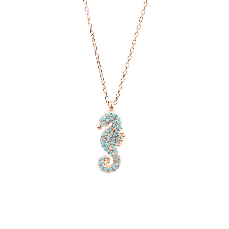 925 Ayar Gümüş Turkuaz Taşlı Deniz Atı Kolye