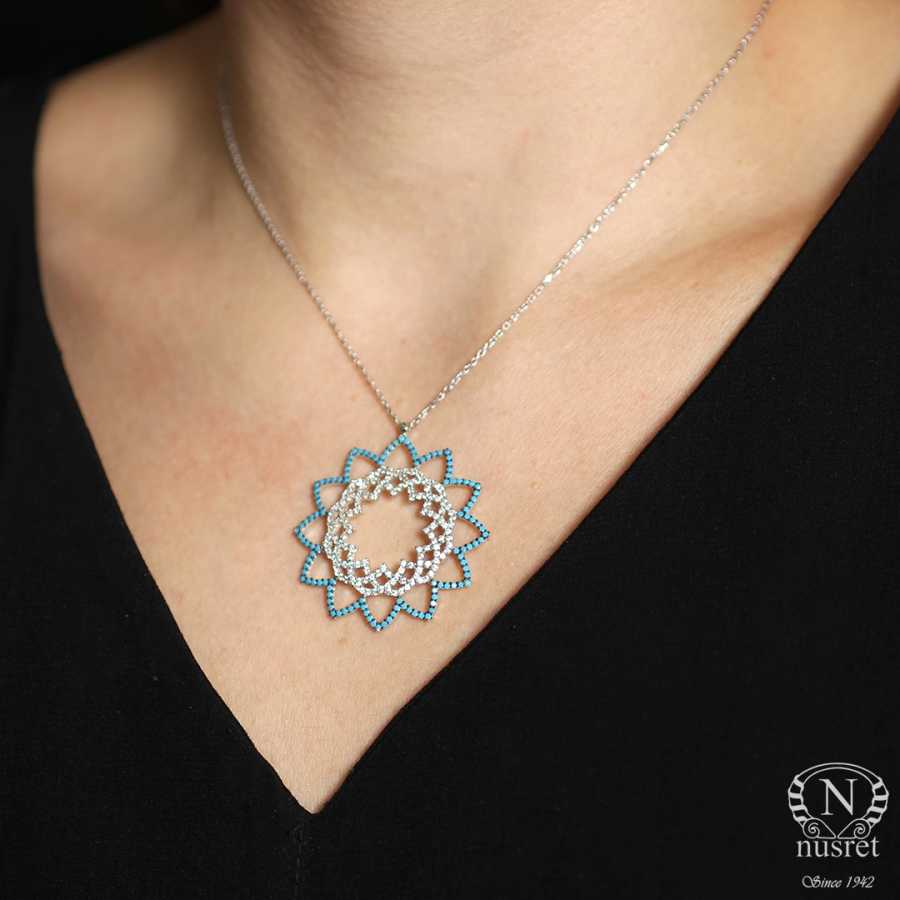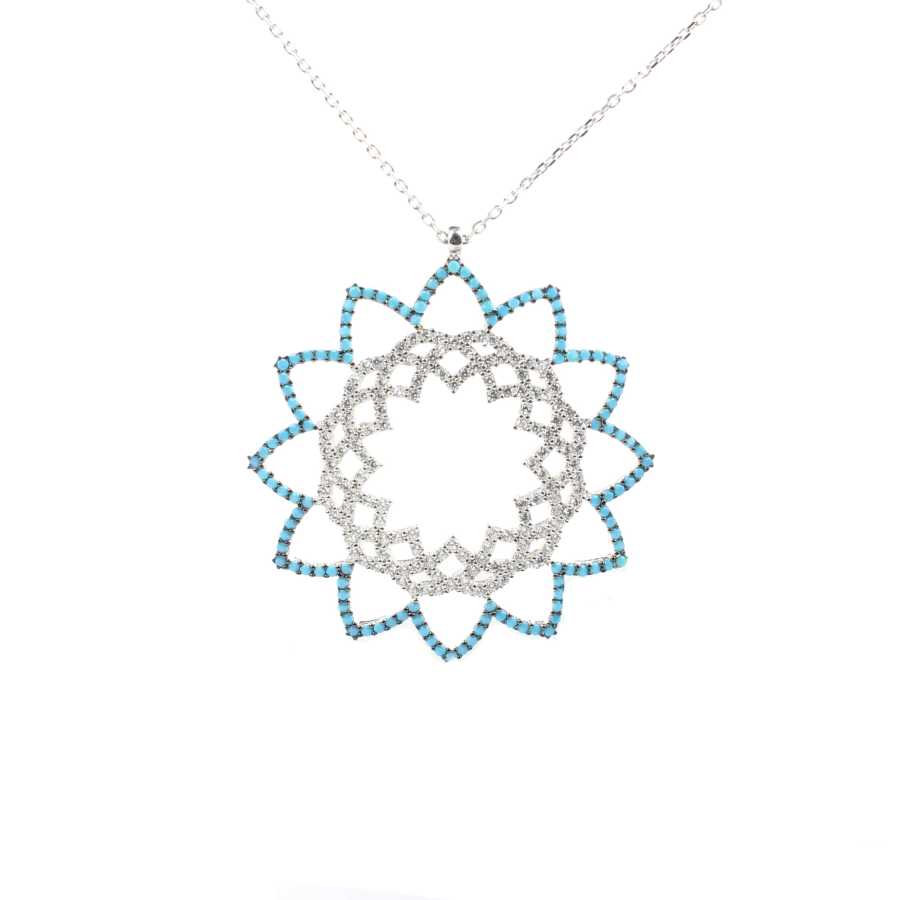 925 Ayar Gümüş Turkuaz Taşlı Güneş Kolye