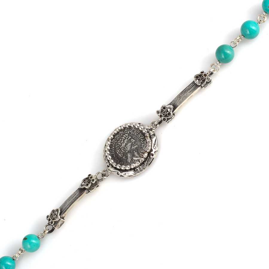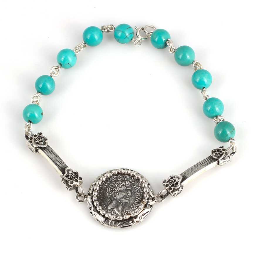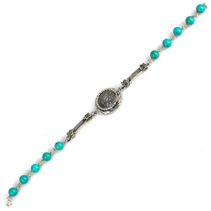 925 Ayar Gümüş Turkuaz Taşlı Yunan Paralı Bileklik