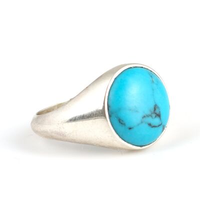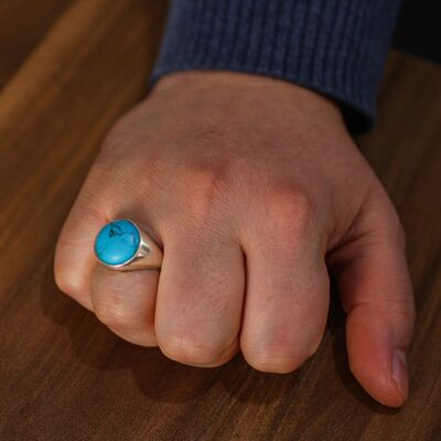 925 Ayar Gümüş Turkuaz Taşlı Yuvarlak Cilalı Erkek Yüzük
