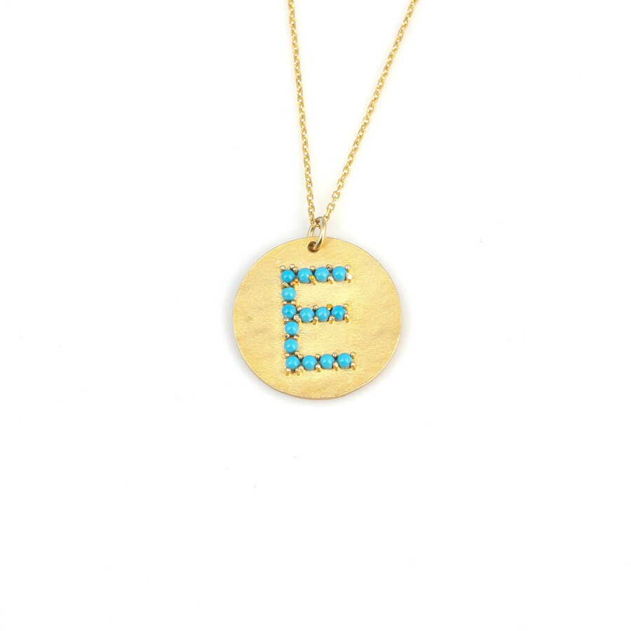 925 Ayar Gümüş Turkuaz Taşlı Yuvarlak harf Kolye 925 ayar gümüşten üretilmiştir. Tüm harfler çalışılmaktadır. Kolye zinciri 45 cm uzunluğundadır. Kolye 2,3 cm çapında plaka üzerinde taşlı harf mevcuttur. Gümüş harf kolye mavi taşlıdır. Ağırlığı 5,63 gramdır.