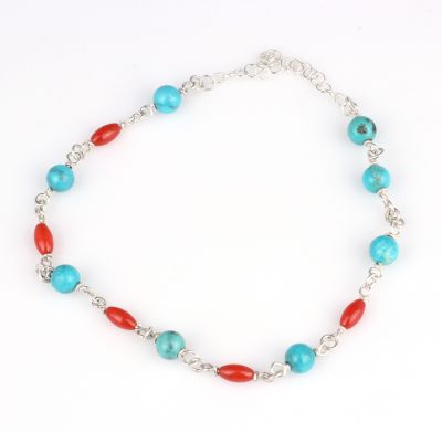 925 Ayar Gümüş Turkuaz ve Mercan Taşlı Halhal Bileklik