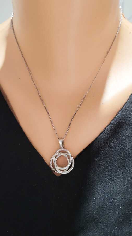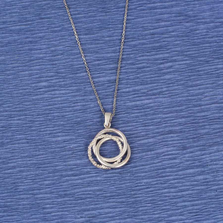 925 Ayar Gümüştür. 19 x 26 mm ebadında üç halkalı kolye. Gramı: 3,01 gr.