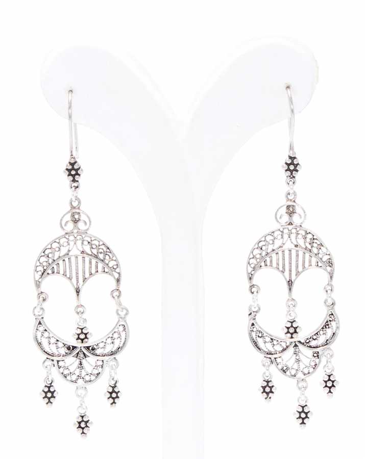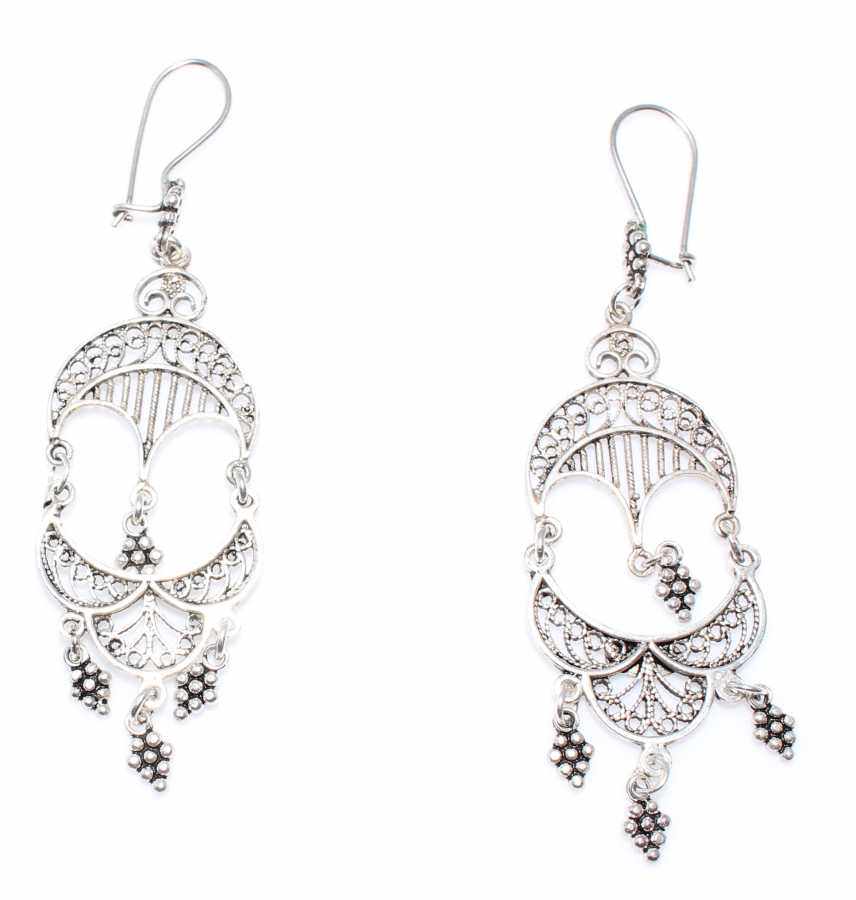 925 Ayar Gümüş Üç Motifli Top Sallantılı Telkari Küpe