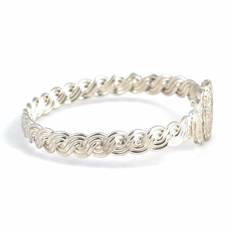 Bilezik 925 ayar gümüşten imal edilmiştir. Oval kaşlı model bilezik 6,2 cm çapındadır. Bileziğin kaşı 3,2 cm'ye 1,9 cm boyutlarındadır. Üç tel burma bilezik 30,21 gram ağırlığındadır. Bilezik el işçiliği ile üretildiği için gramlarda değişiklik olabilmektedir.