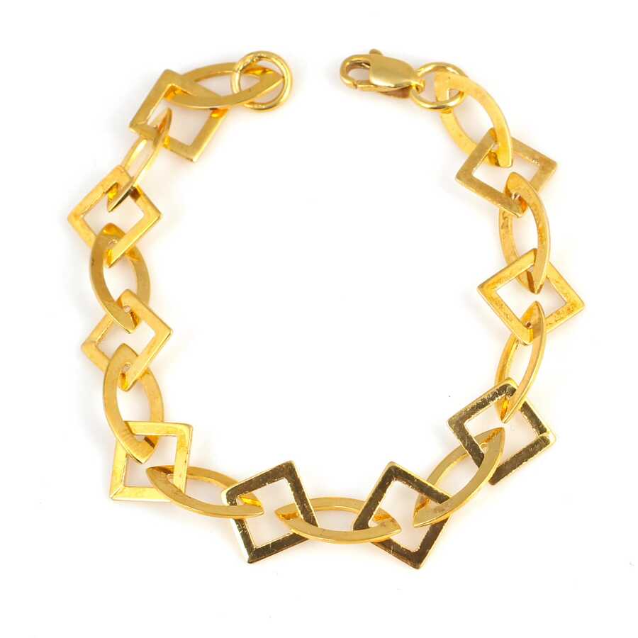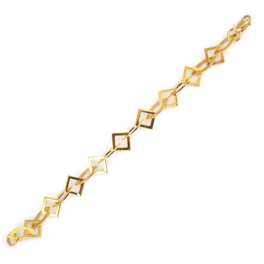 Notify me when its in stockBileklik 925 ayar gümüşten imal edilmiştir. Zarif zincir bileklik 19 cm uzunluğundadır. Bileklik 1,2 cm genişliğindedir. Gümüş elips parça 0,7 cm'ye 1,5 cm ve kare 1,2 cm boyutlarındadır Bileklik taşsızdır. Zincir bileklik sarı renk rodajlıdır. Ağırlığı 7,58 gramdır.