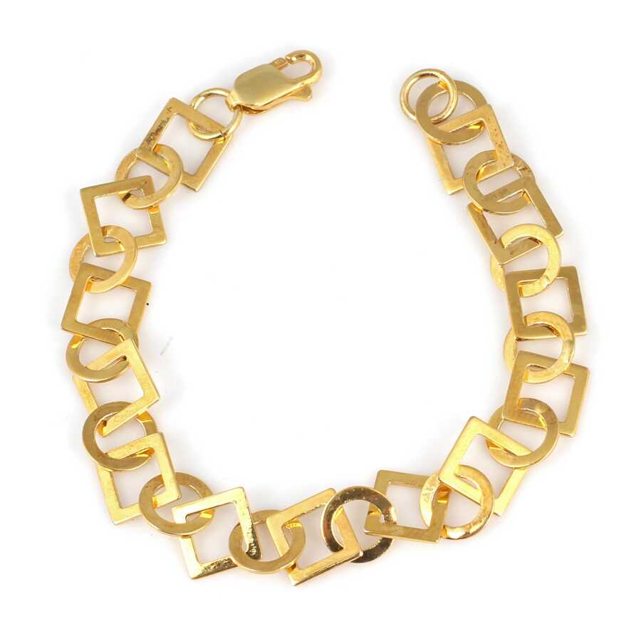 Notify me when its in stock Bileklik 925 ayar gümüşten imal edilmiştir. Yuvarlak ve kare bileklik 20 cm uzunluğundadır. Bileklik 1,2 cm genişliğindedir. Gümüş kare 1,2 cm ve yuvarlak halka 0,9 cm boyutlarındadır Bileklik taşsızdır. Zincir bileklik sarı renk rodajlıdır. Ağırlığı 9,2 gramdır.