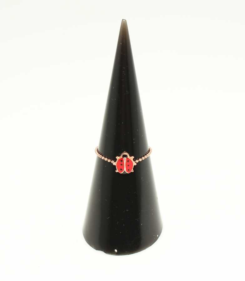 Yüzük 925 ayar gümüşten üretilmiştir. Minik uğur böcekli yüzük 16 ölçüdür. Tüm ölçüler yapılabilmektedir. Yüzük taşsız ve zincirlidir. Ağırlığı 0,42 gramdır.