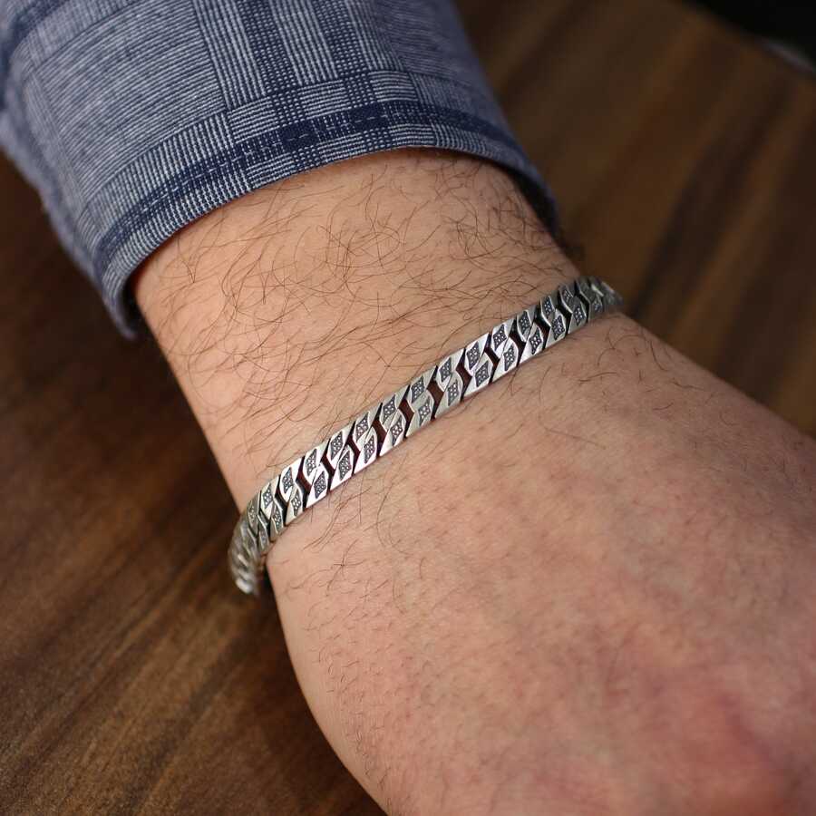 925 Ayar Gümüş Üzeri Baklava İşlemeli Gurmet Mat Zincir Bileklik