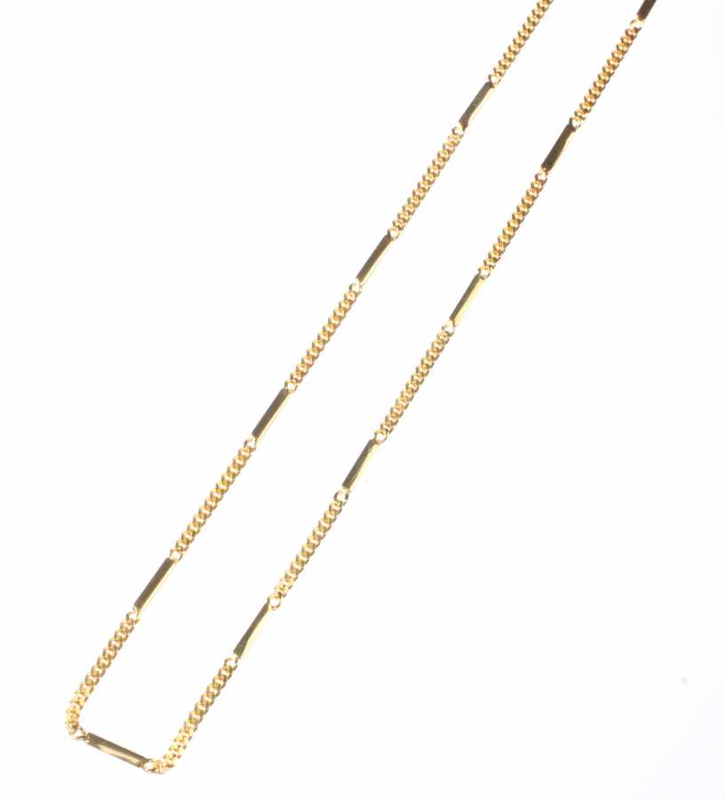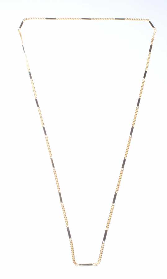 Gümüş kolye 925 ayar gümüşten yapılmıştır. Özel tasarım plaka ve zincirlerden oluşan zincir 74 cm uzunluğundadır ve taşsızdır. Sarı rodajlıdır. Ağırlığı 15,7 gramdır.