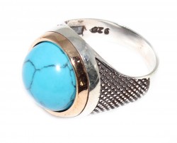 Yüzük 925 ayar gümüşten üretilmiştir. Taşlı yüzüğün taşı 1,4 cm boyutlarındadır. Resimdeki yüzük 21 ölçüdür, ancak tüm ölçüler özel olarak yapılabilmektedir. Yüzük turkuaz renk taşlıdır. Ağırlığı 11,42 gramdır.