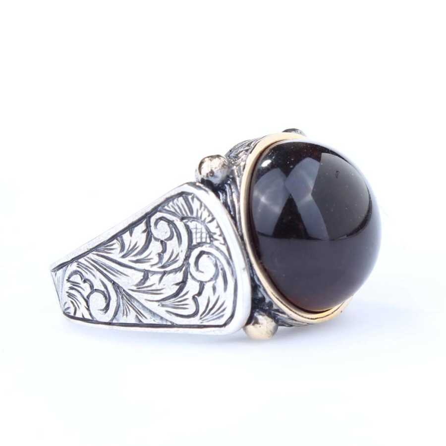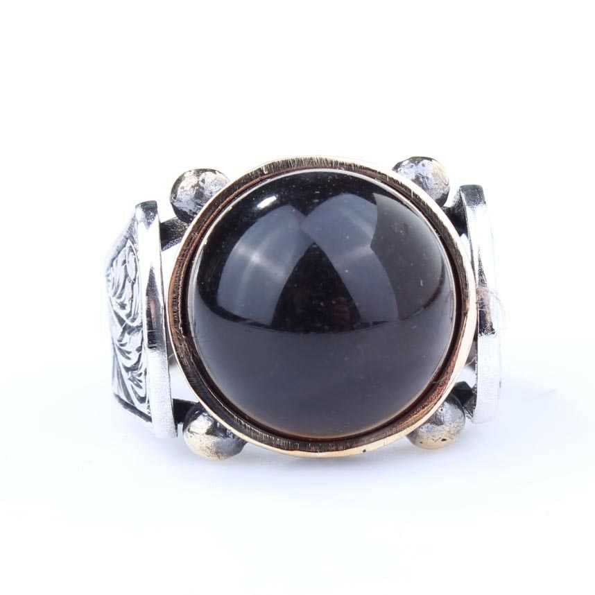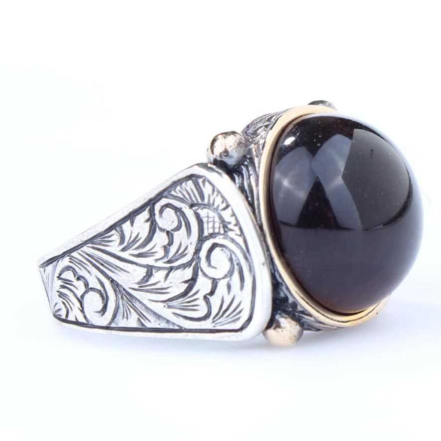 925 Ayar Gümüş ve Bronz Karışımı Kahverengi Akik Taşlı Erkek Yüzükk