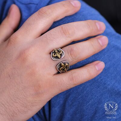 925 ayar gümüş ve bronz erkek yüzüğü. Taşsızdır. Gümüş yüzük üzerine bronz parçalı osmanlı motifi bulunmaktadır. Ayarlanabilir yüzük ölçüsü Gramı: 11,6