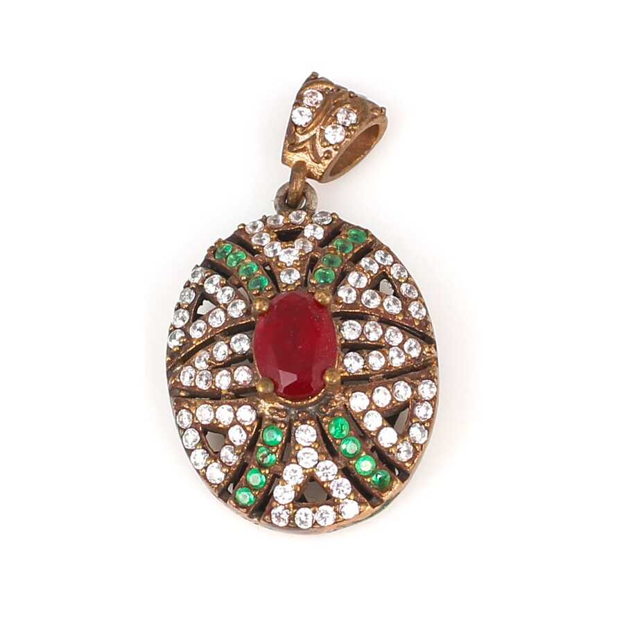 Kolye ucu 925 ayar gümüş ve bronzdan imal edilmiştir. Oval şeklindeki kolye ucu 3,5 cm'ye 2,0 cm boyutlarındadır. Zincir dahil değildir. Kolye ucu sentetik yakut, zümrüt ve zirkon taşlıdır. Otantik kolye ucu 7,84 gram ağırlığındadır.