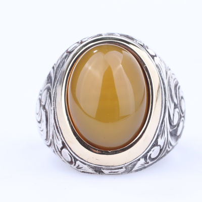 925 Ayar Gümüş ve Bronz Karışımı Sarı Akik Taşlı Erkek Yüzük
