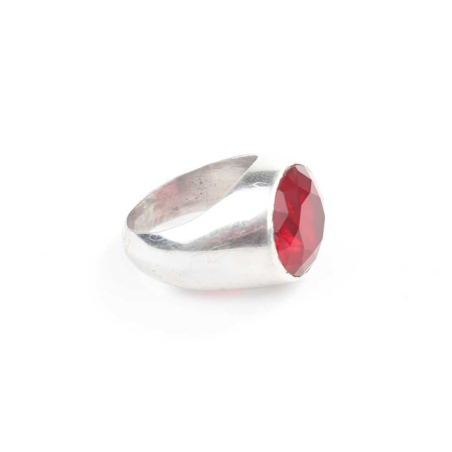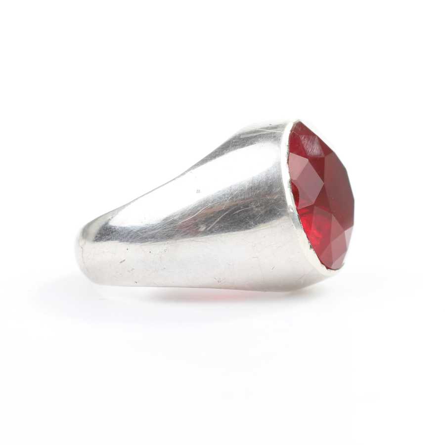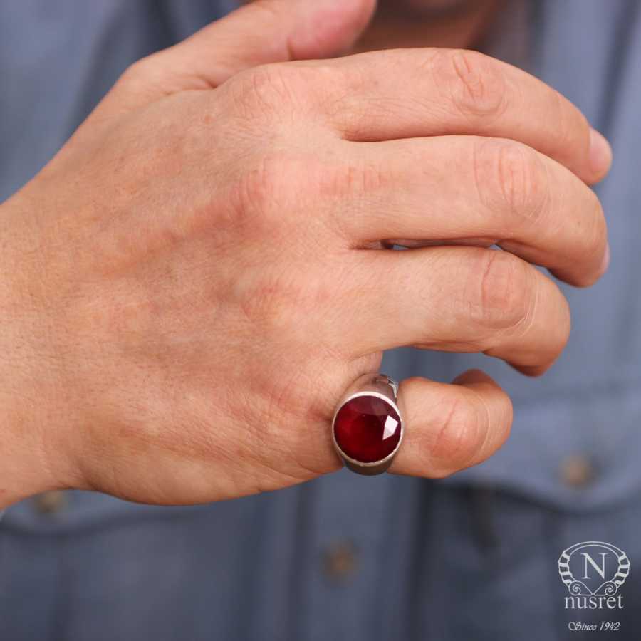 925 Ayar Gümüş Yakut Rengi Erkek Yüzüğü