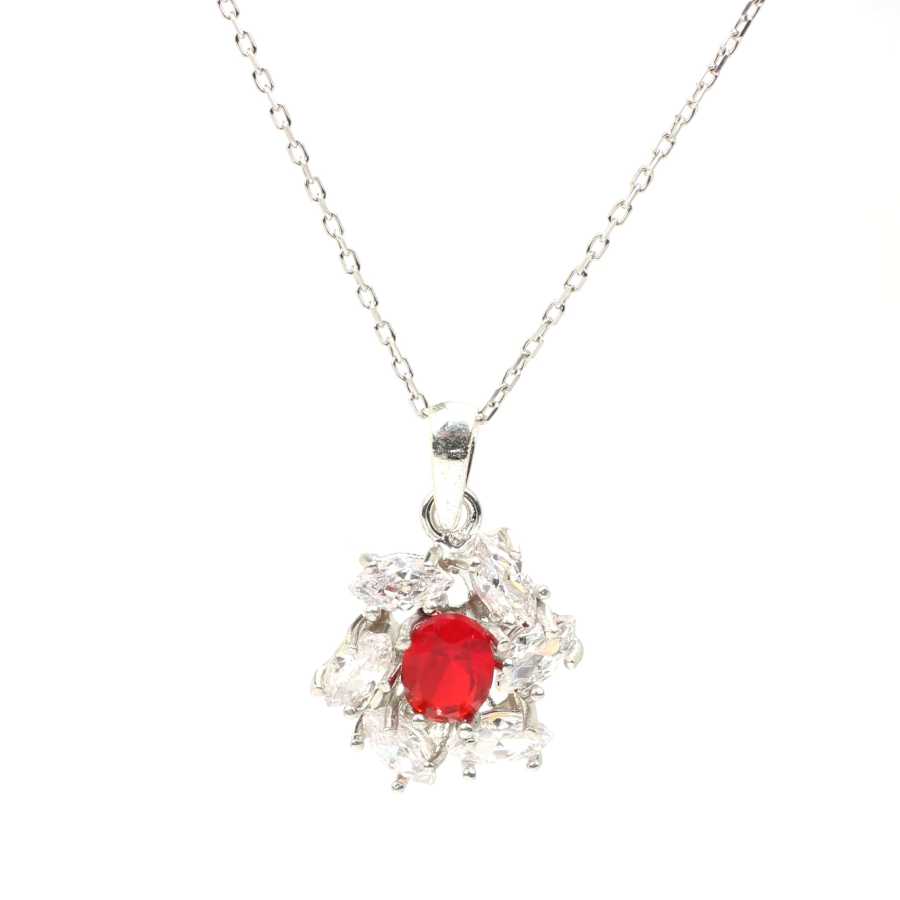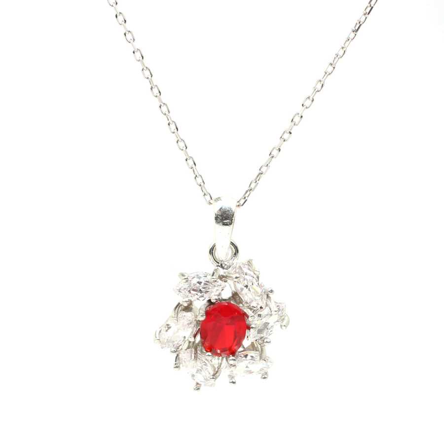 925 Ayar Gümüş Yakut Taşlı Helezon Çiçekli Kolye