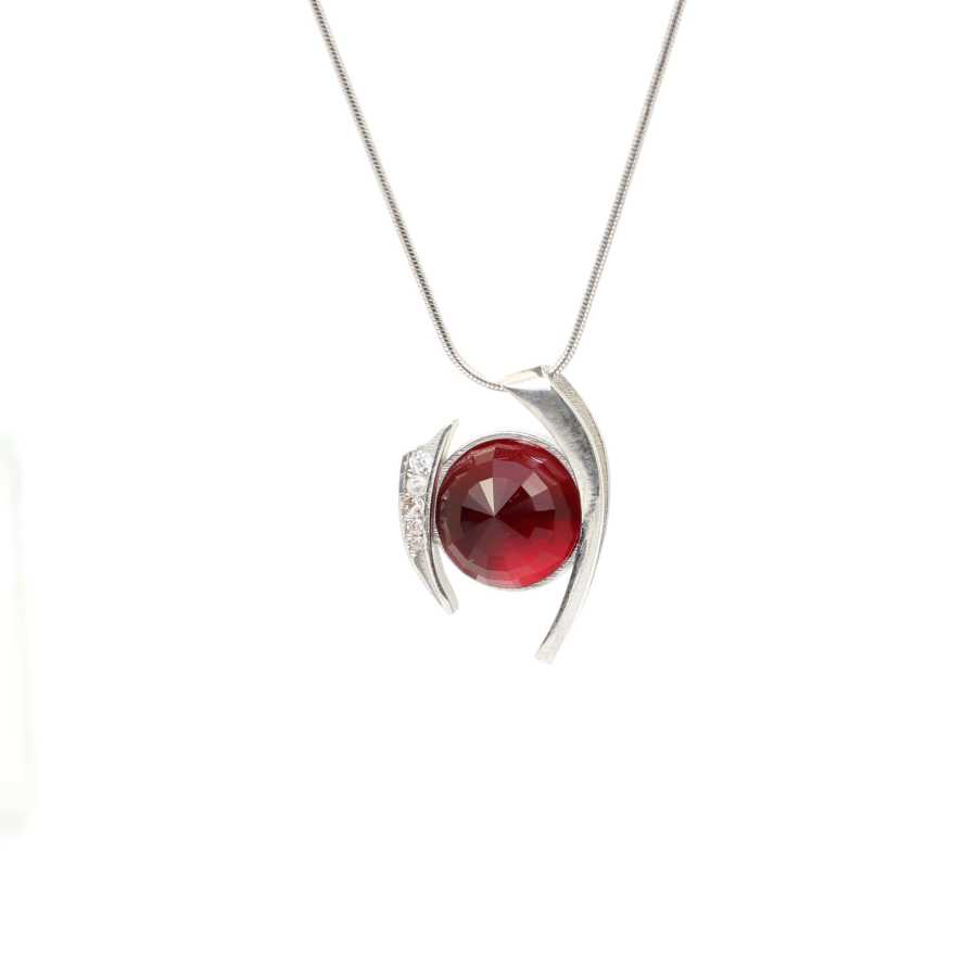 925 Ayar Gümüş Yakut & Zirkon Taşlı Trend Kolye