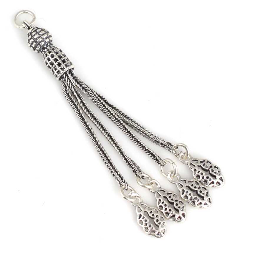 925 ayar gümüş olarak üretilmiştir. Gümüş püskül 6,5 cm uzunluğundadır. Püskül ucunda yaprak şeklinde figürler vardır. Ağırlığı 5,24 gramdır.