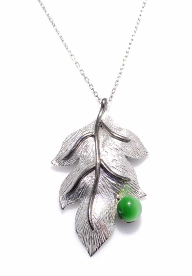 Gümüş kolye 925 ayar gümüşten yapılmıştır. Yaprak kolye 3,9 cm'ye 2,3 cm boyutlarındadır. Zinciri 41 cm uzunluğundadır. Kolye zirkon taşlıdır. Ağırlığı 4,43 gramdır.
