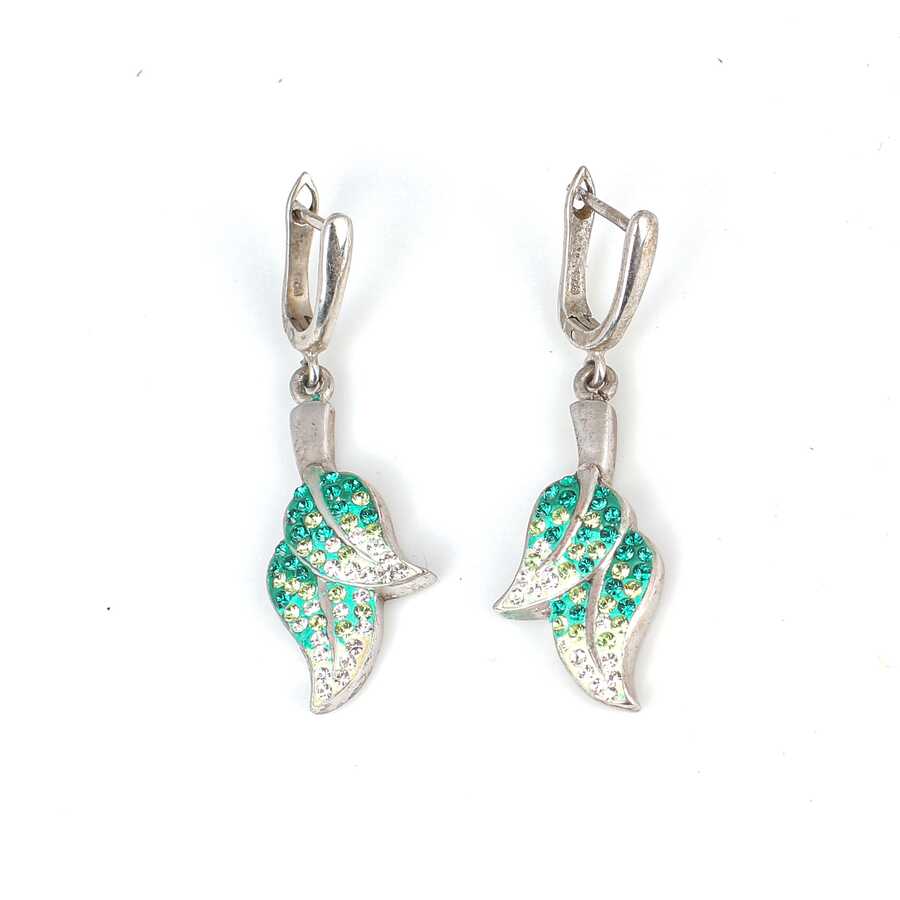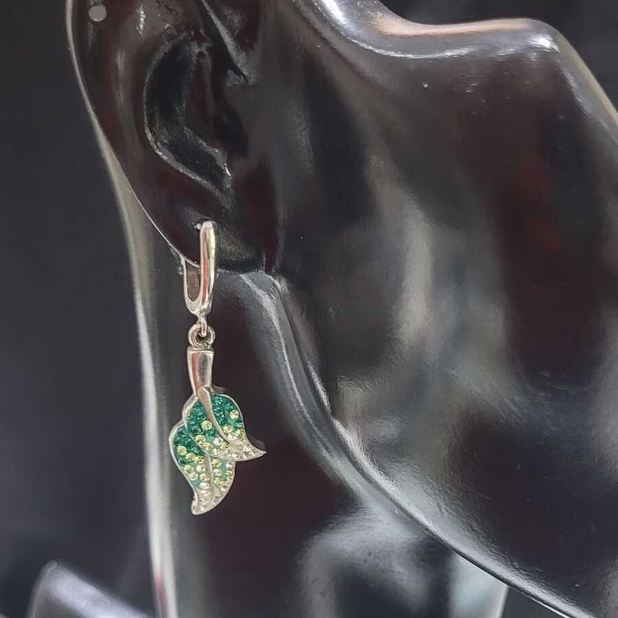 Gümüş küpe 925 ayar gümüşten yapılmıştır. Yaprak şeklindeki taşlı küpe 1,5 cm'ye 4,4 cm boyutlarındadır. Küpe yeşil ve beyaz zirkon taşlıdır. Ağırlığı 9,37 gramdır.