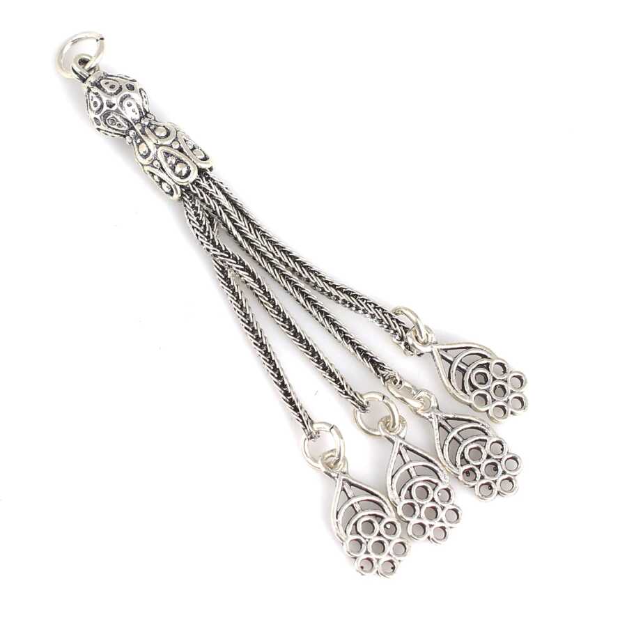 925 ayar gümüş olarak üretilmiştir. Gümüş püskül 7 cm uzunluğundadır. Püskül ucunda yapraklı papatya figürler vardır. Ağırlığı 5,64 gramdır.