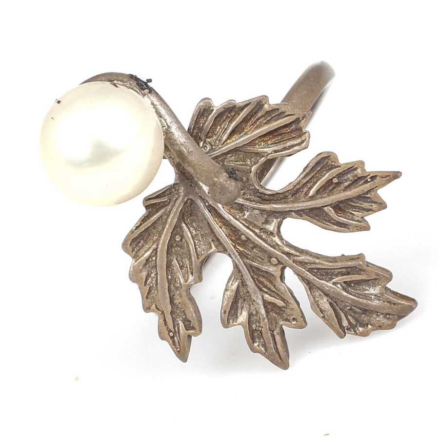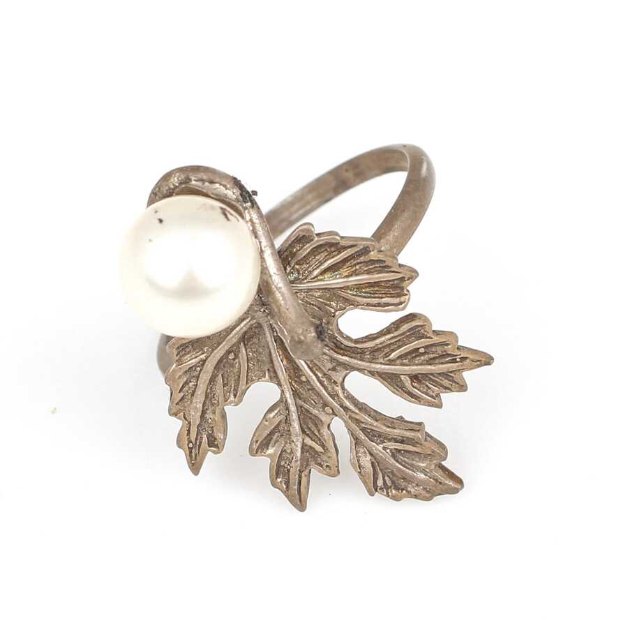 925 Ayar Gümüş Yapraklı İncili Yüzük