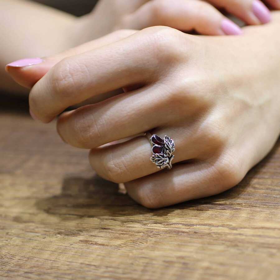 925 Ayar Gümüş Yapraklı Kırmızı Mineli Yüzük