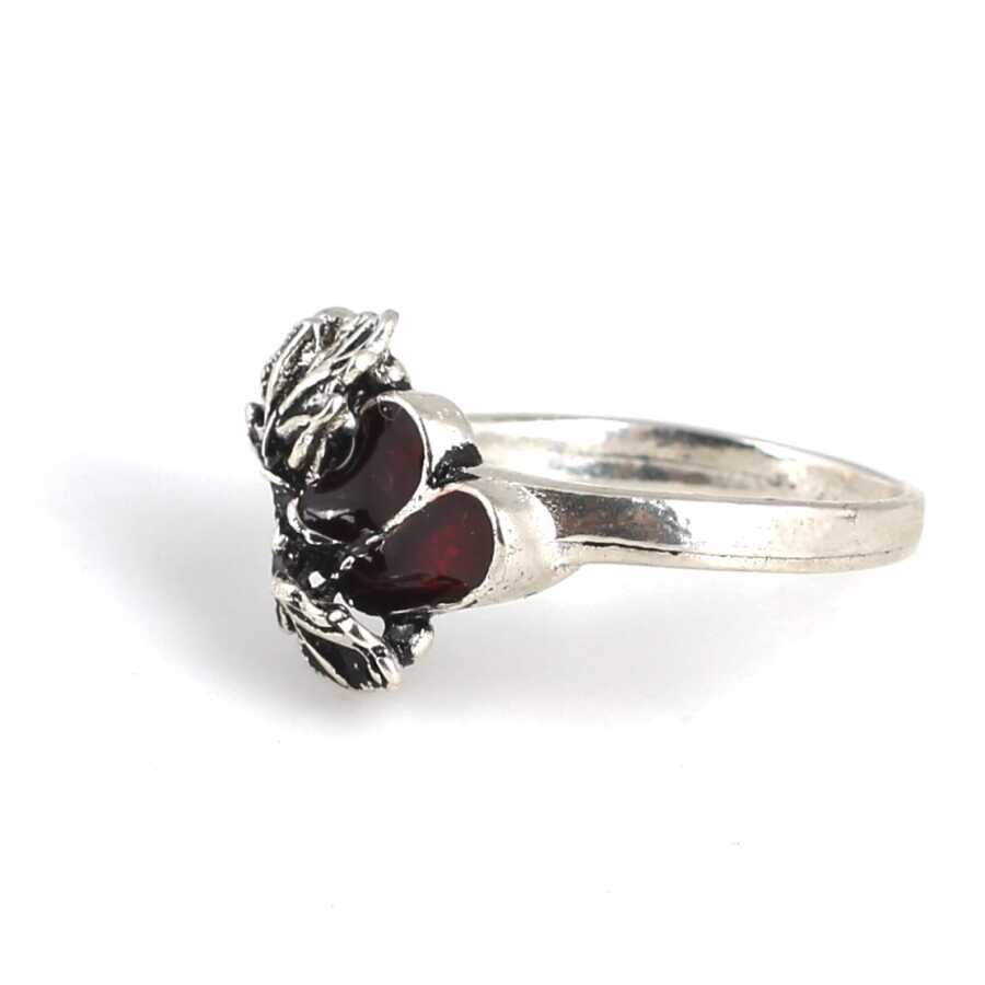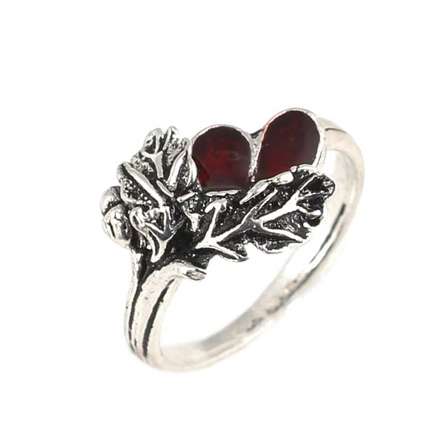 Notify me when its in stock Yüzük 925 ayar gümüşten üretilmiştir. Yüzüğün üst kısmı 1,3 cm'ye 1,5 cm boyutlarındadır. Yaprak motifli yüzük 13 ölçüdür. Tüm ölçüler yapılabilmektedir. Yüzük taşsız ve kırmızı minelidir. Ağırlığı 2,97 gramdır.