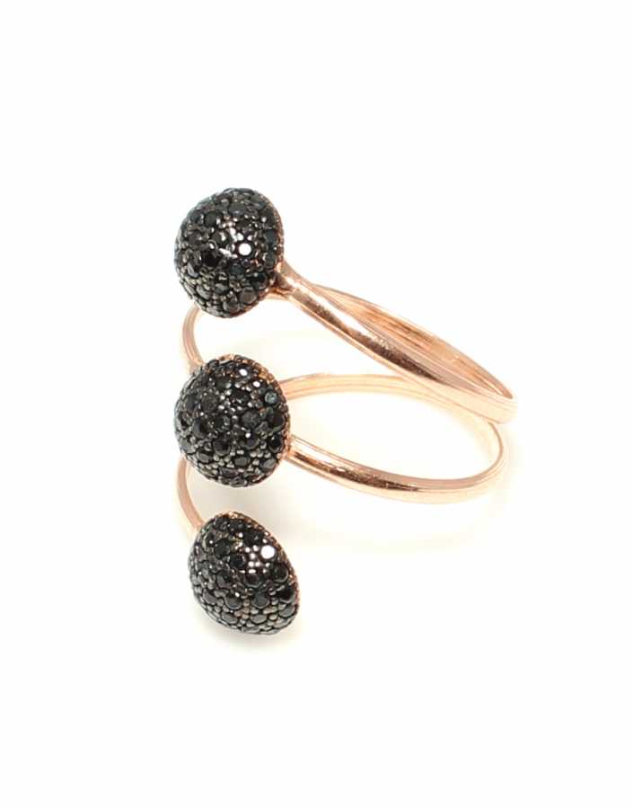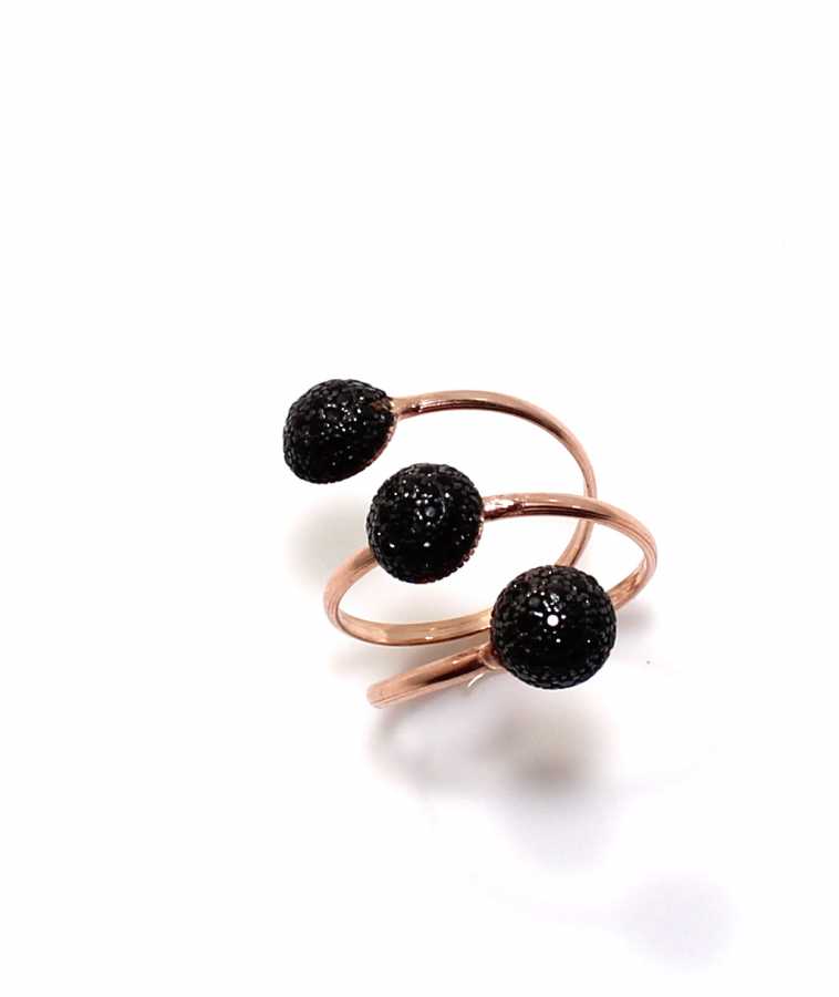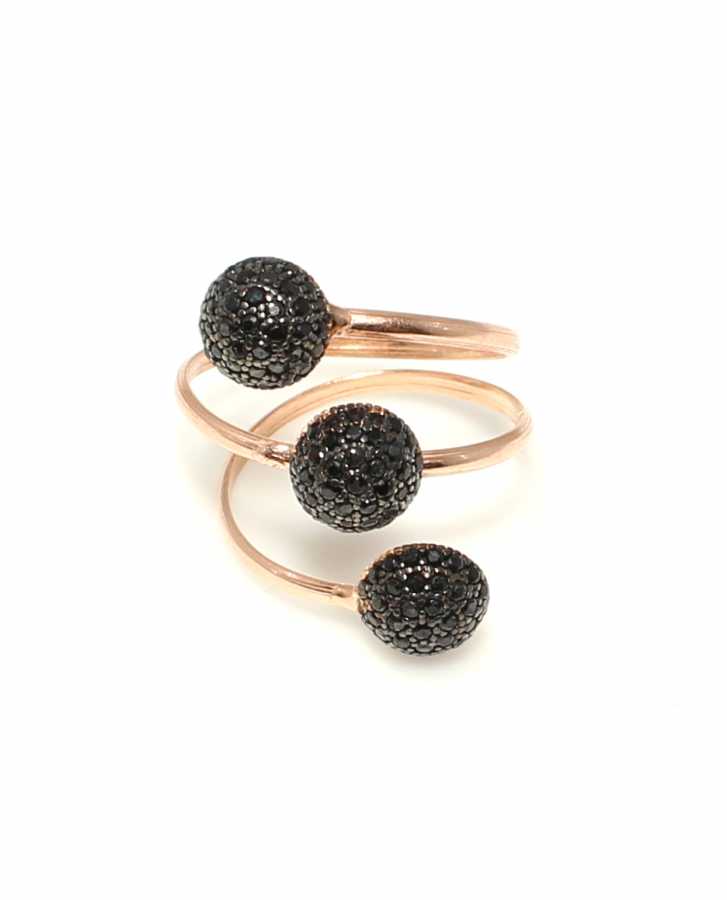 925 Ayar Gümüş Yarım Toplu 3 Sıra Yüzük, Pembe - Siyah Taş
