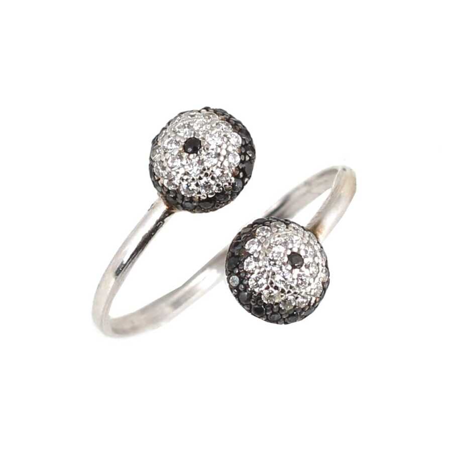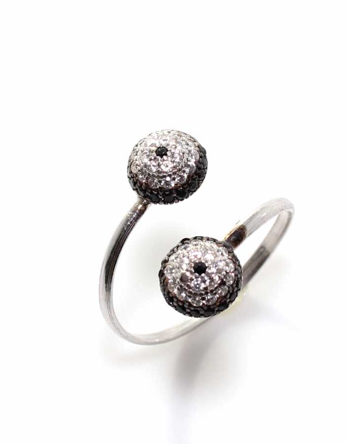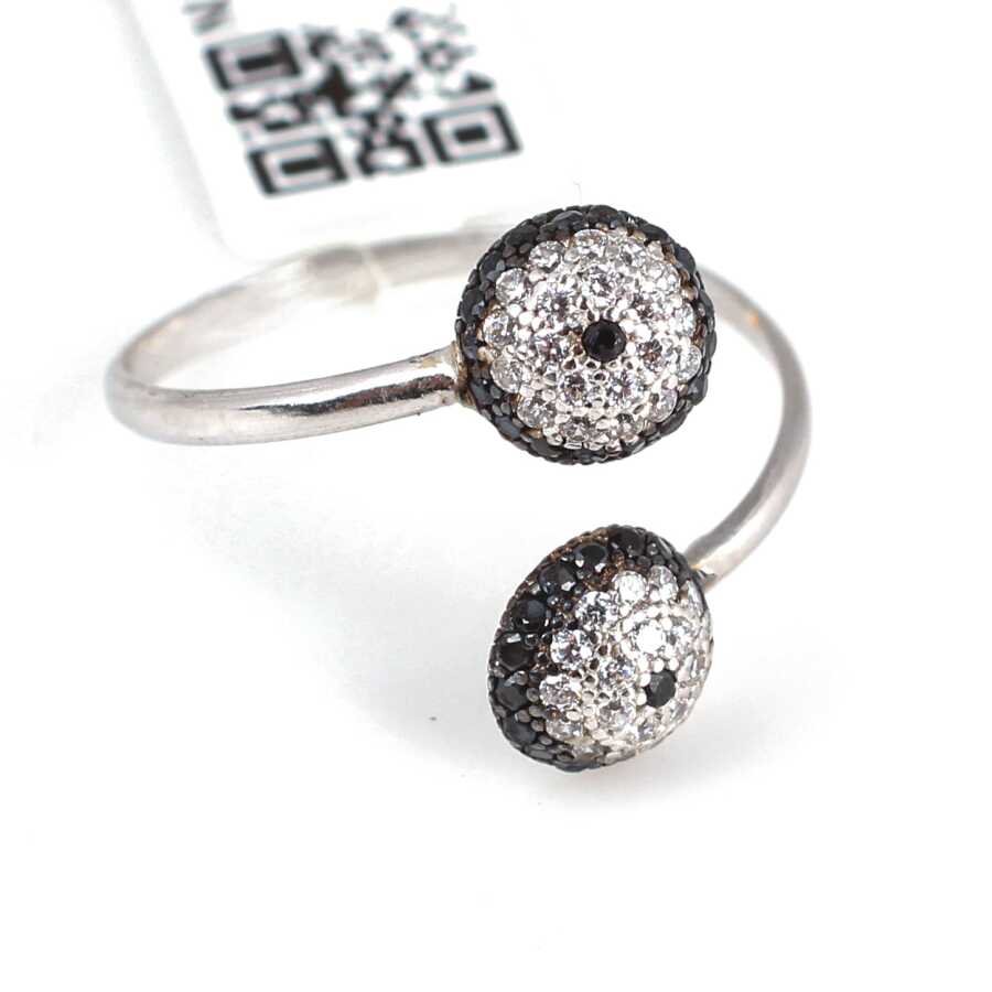 Yüzük 925 ayar gümüşten üretilmiştir. Göz boncuğu şeklindeki yarım toplardan oluşan yüzük ayarlanabilir ölçüdür. Yüzük siyah ve beyaz zirkon taşlara sahiptir. Yarım yuvarlak şeklindeki parça 0,7 cm boyutlarındadır. Ağırlığı 1,39 gramdır.