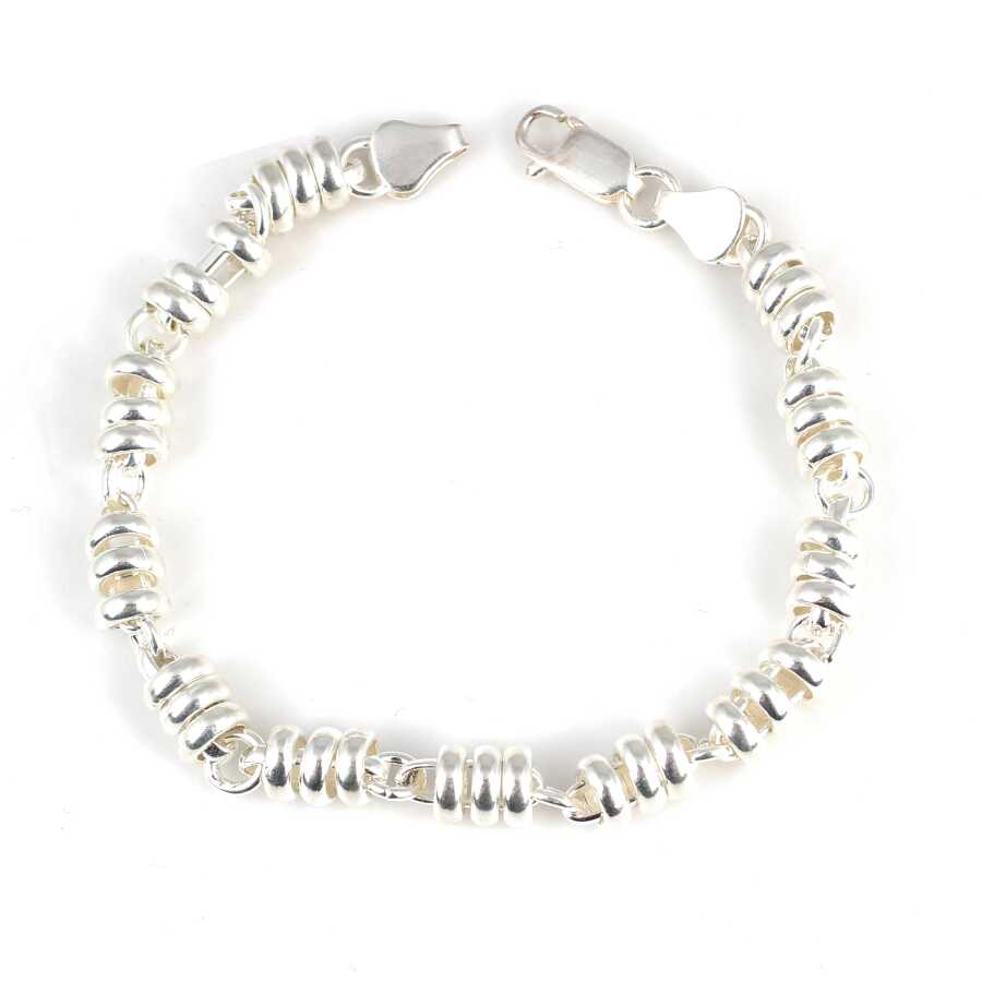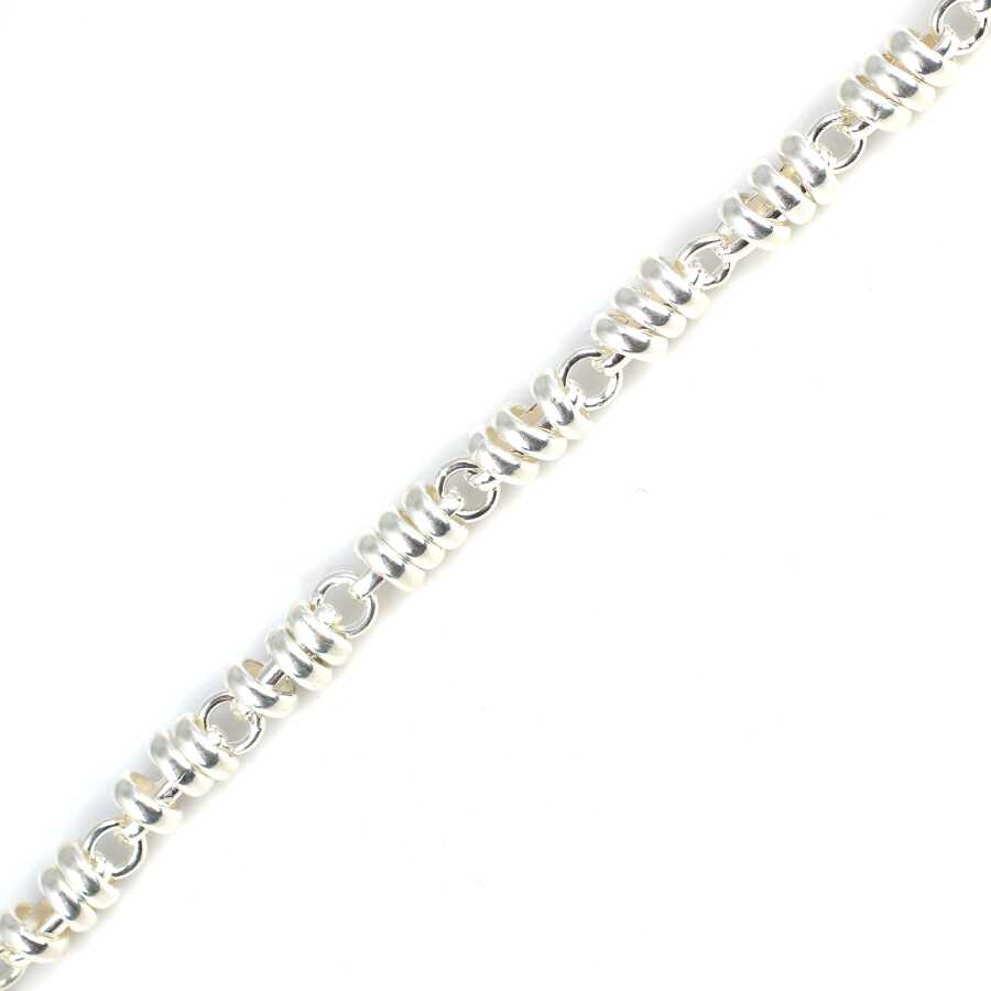 Bileklik 925 ayar gümüşten imal edilmiştir. Yay model bileklik 21 cm uzunluğundadır. Bileklik 0,7 cm genişliğindedir. Bileklik taşsızdır. Zincir bileklik gümüş renk rodajlıdır. Ağırlığı 21,04 gramdır.