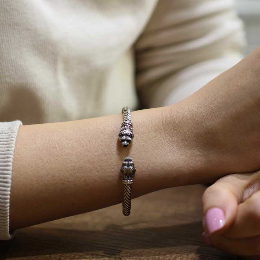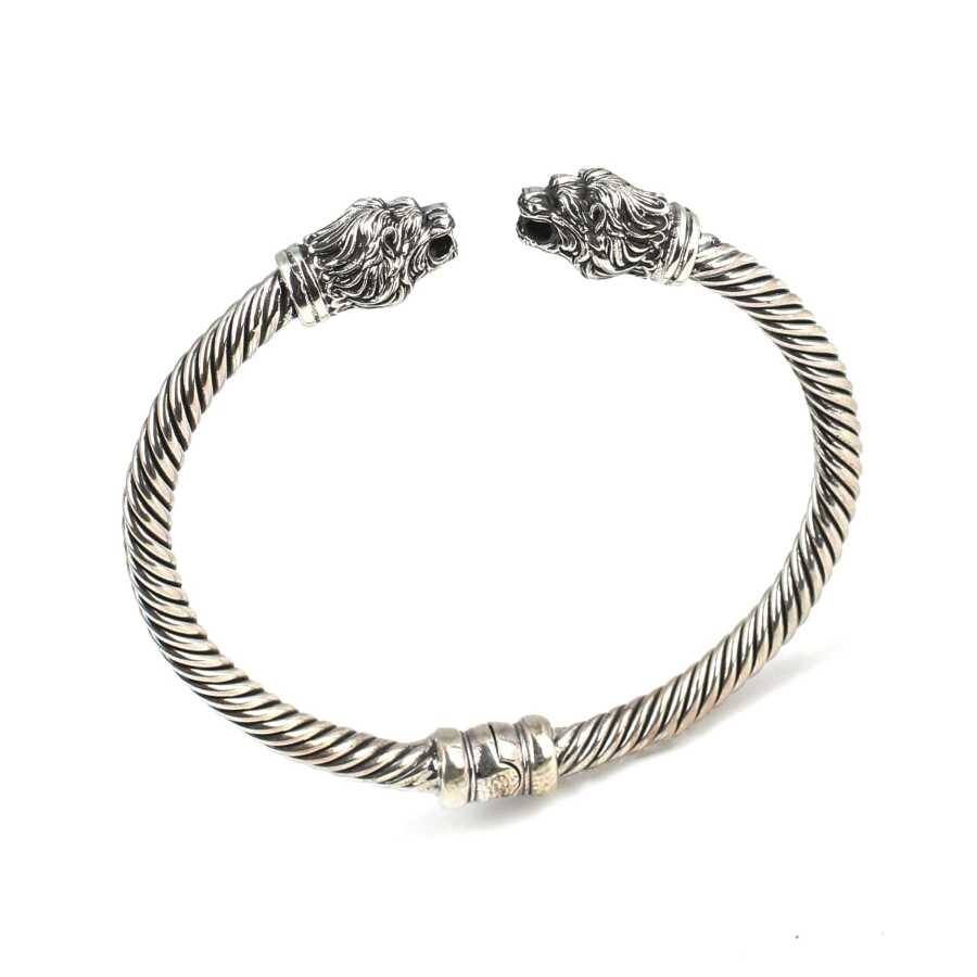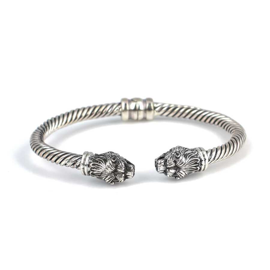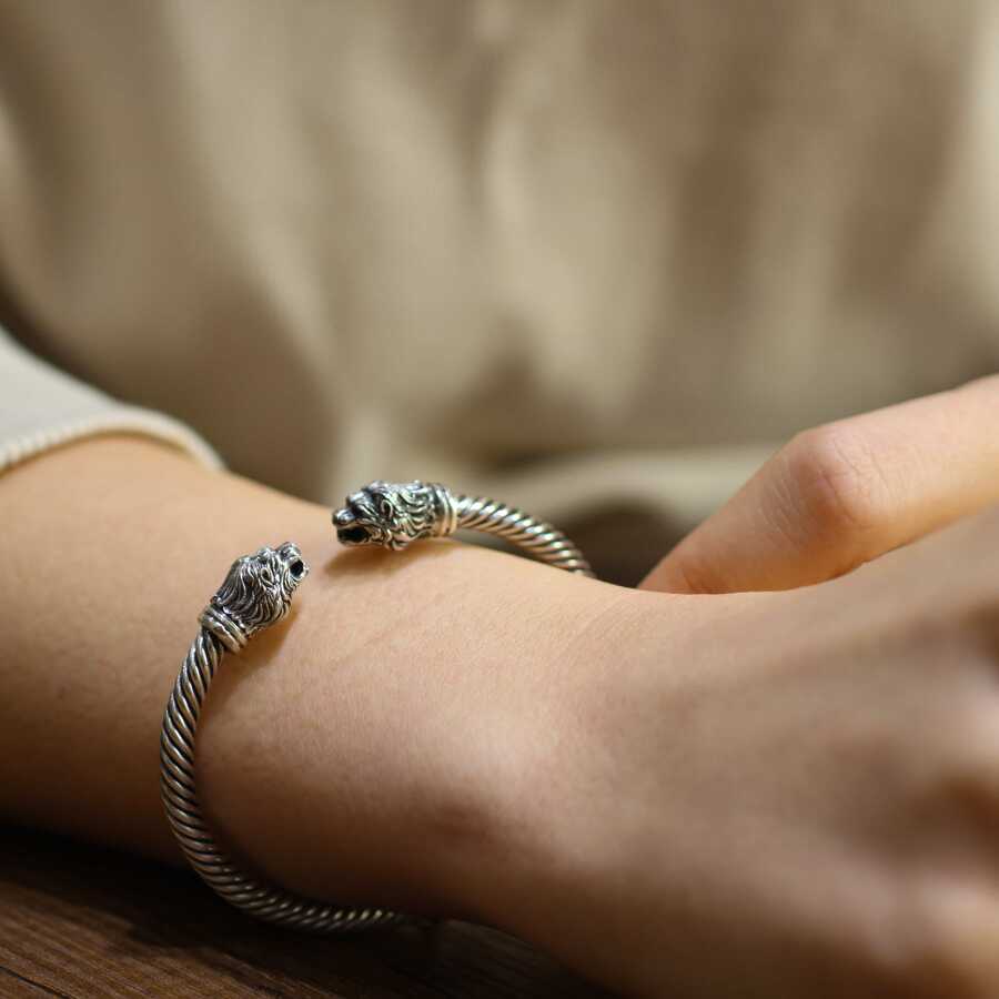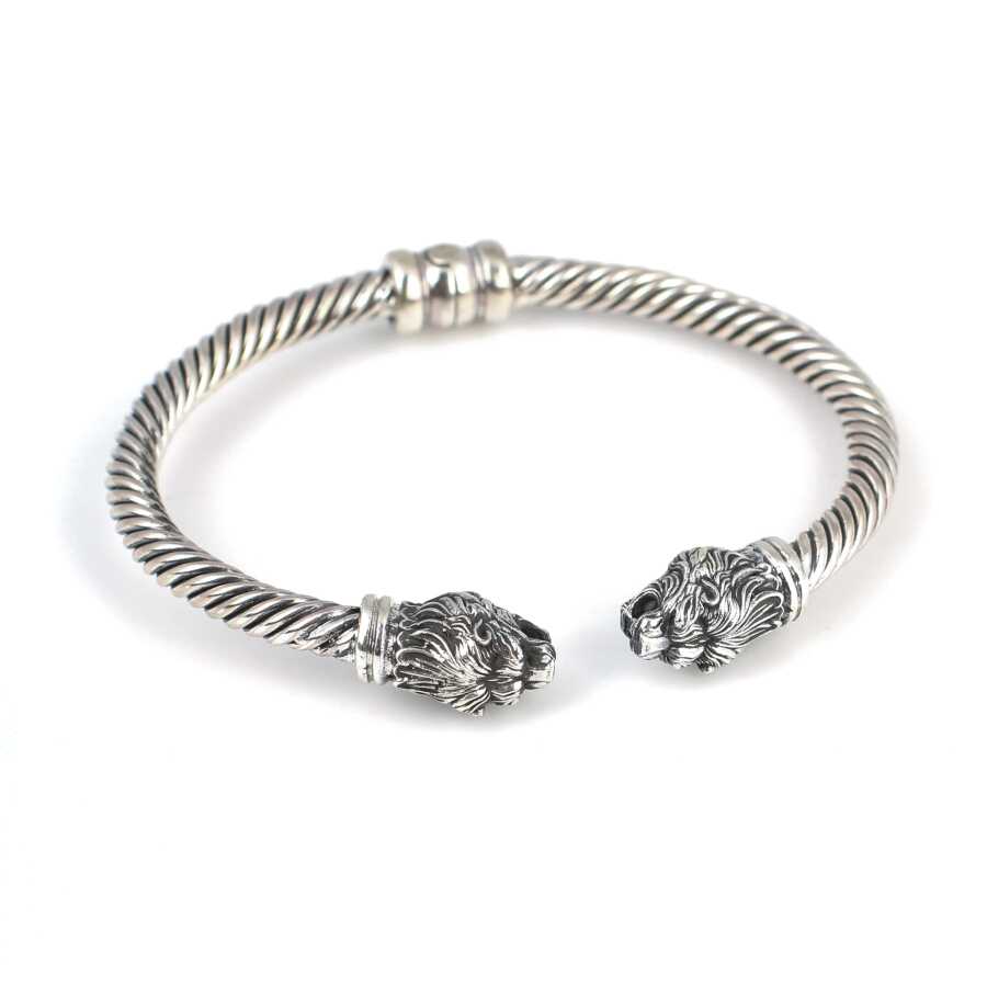 925 Ayar Gümüş Yeleli Aslan Başı Yaylı Burgu Kol Erkek Bileziği