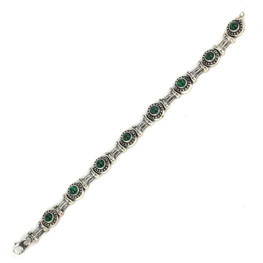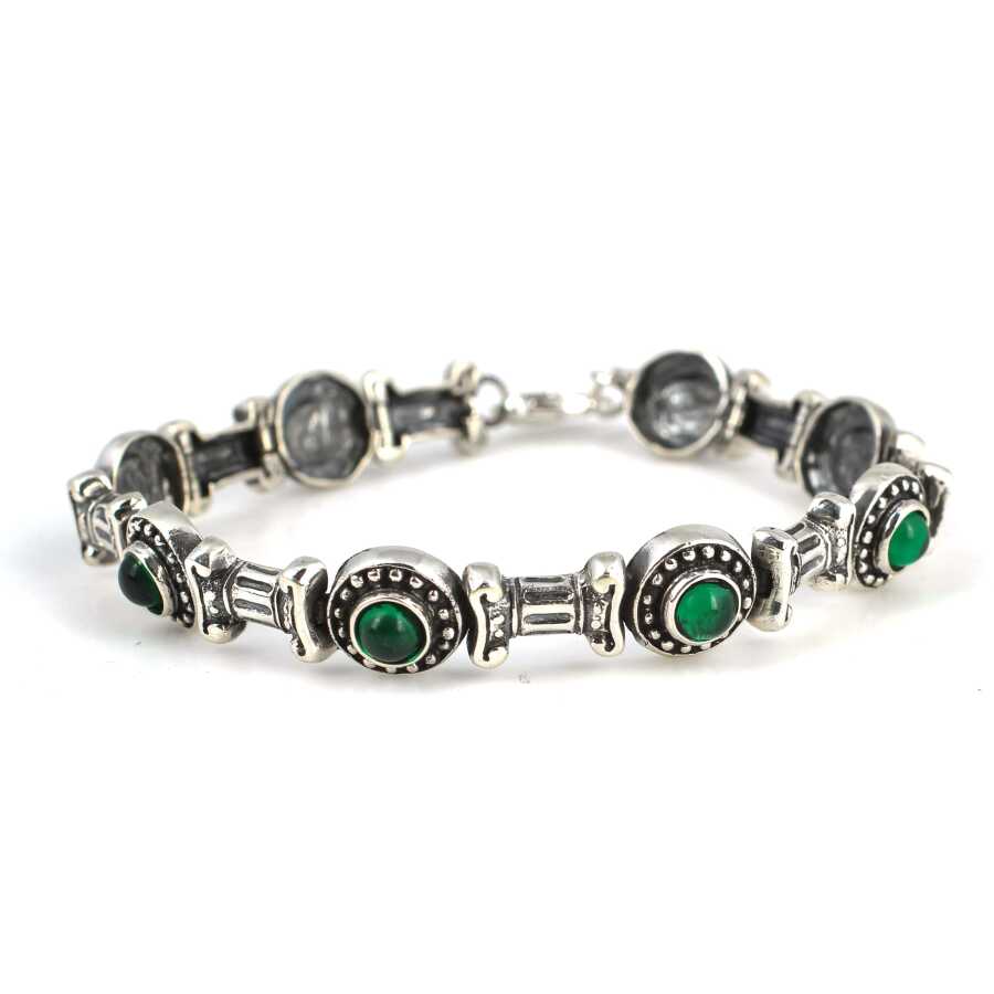 Bileklik 925 ayar gümüşten imal edilmiştir. Antik model bileklik 1,1 cm eninde ve 20,5 cm uzunluğundadır. Gümüş antik bileklik yeşil akik taşlıdır. Gümüş bileklik 22,95 gramdır.