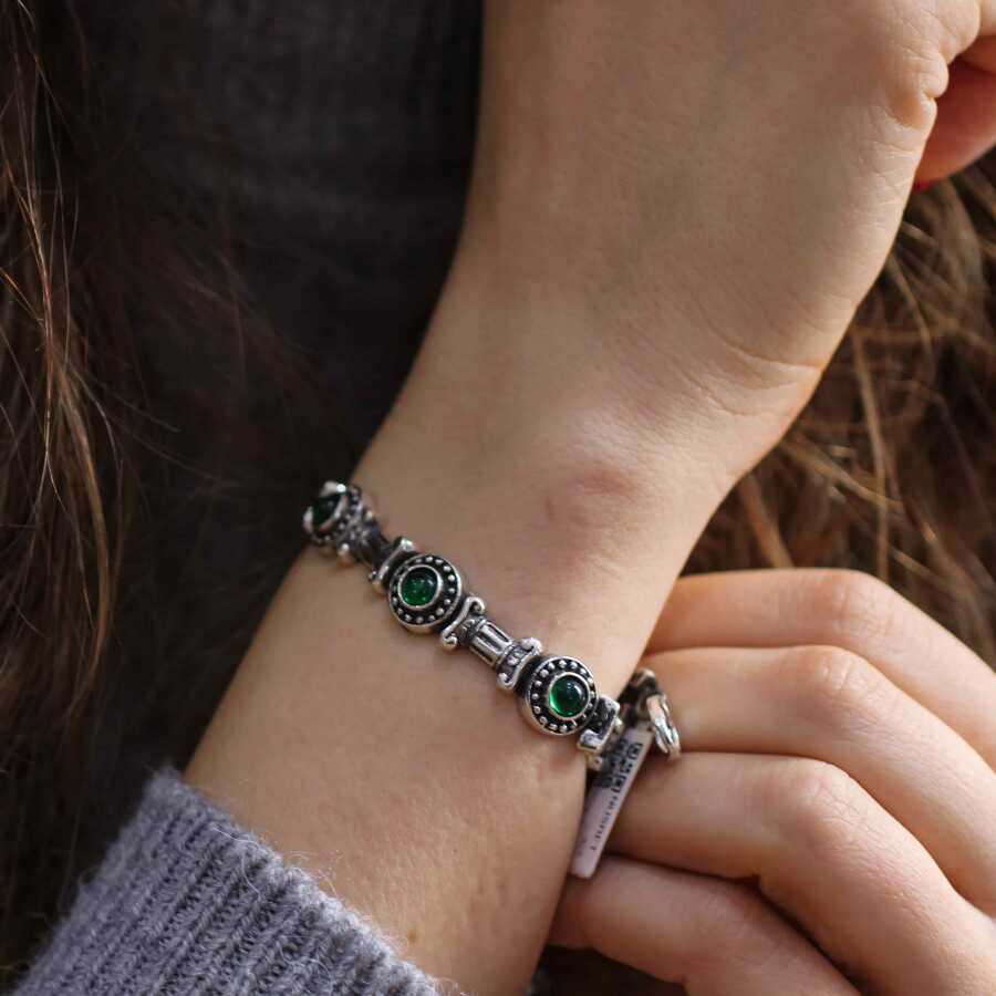 925 Ayar Gümüş Yeşil Akik Taşlı Antik Bileklik