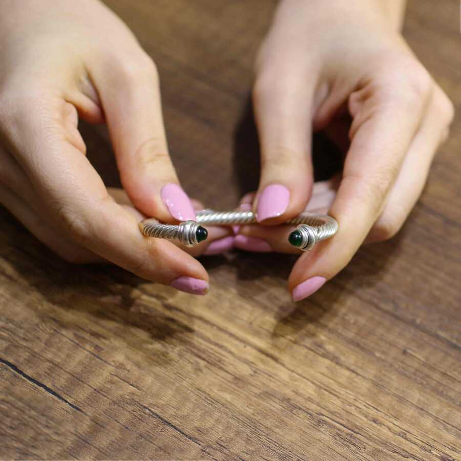 925 Ayar Gümüş Yeşil Akik Taşlı Burgu Kollu Erkek Bileziği