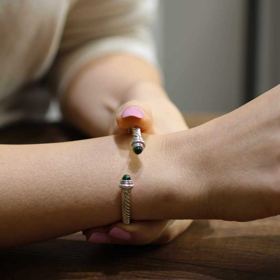 Bilezik 925 ayar gümüşten imal edilmiştir. 6 tel burgu bilezik 6,2 cm çapındadır. Bileziğin önü 0,9 cm genişliğindedir. Bilezik yeşil akik taşlıdır. Ağırlığı 19,08 gramdır.