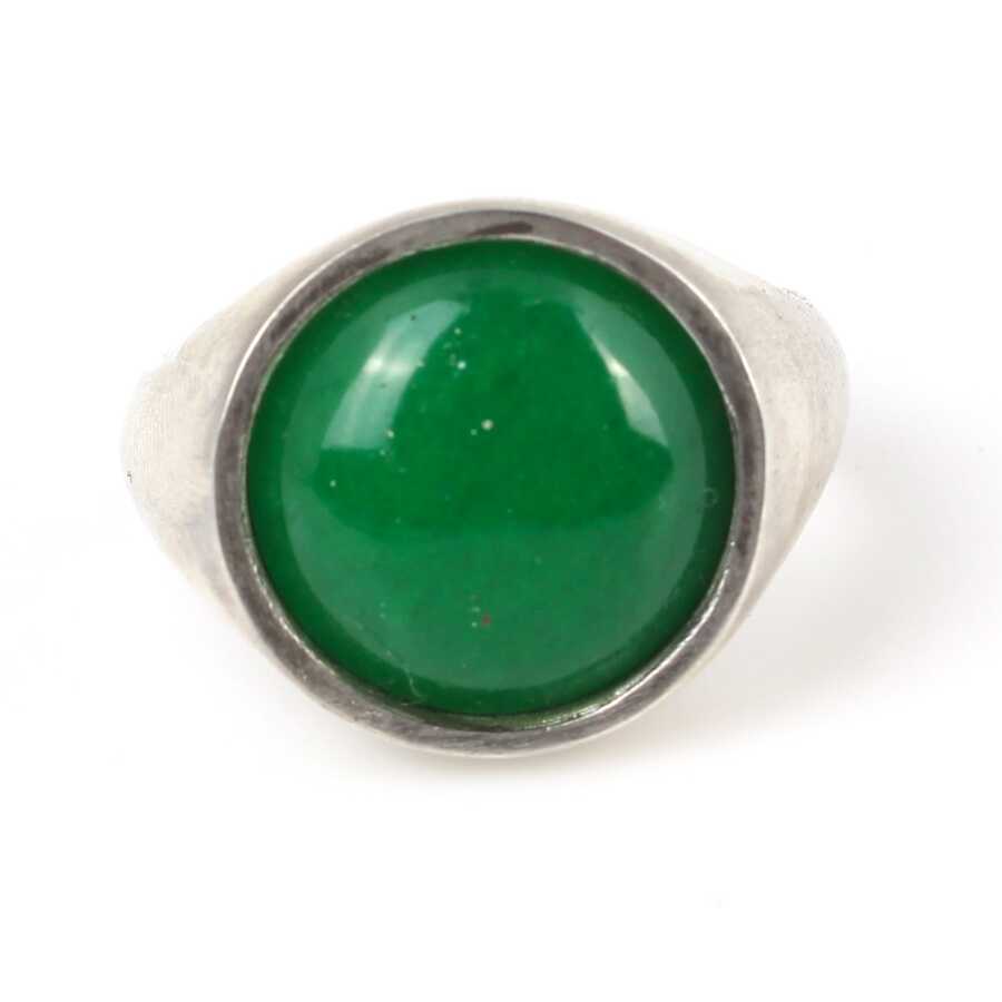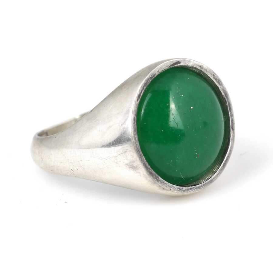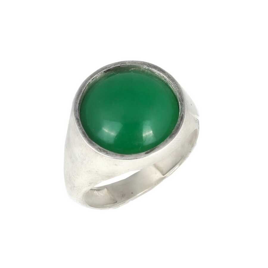 925 Ayar Gümüş Yeşil Taşlı Düz Erkek Yüzüğü